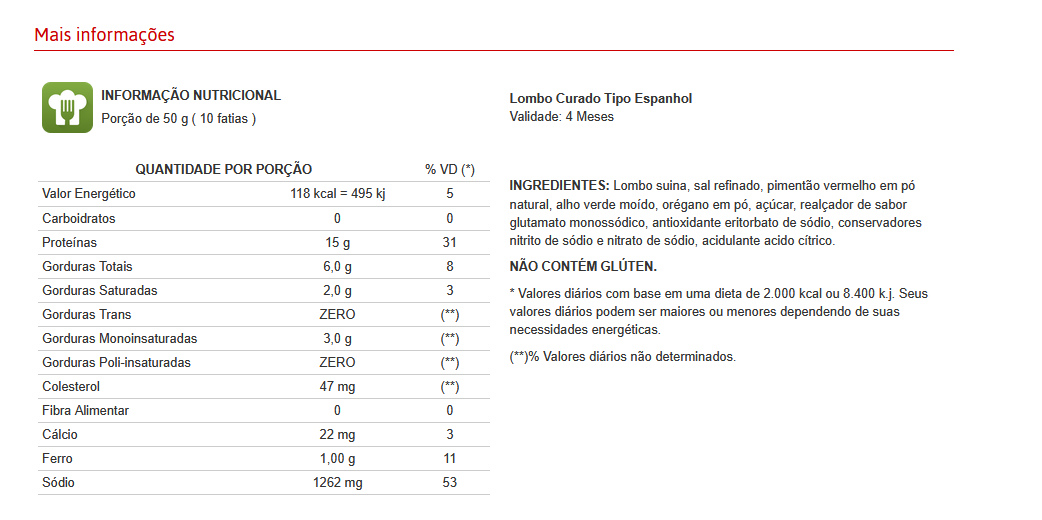 Elaboração: Curado lentamente por 50 dias, um processo que confere sabor e textura únicos.