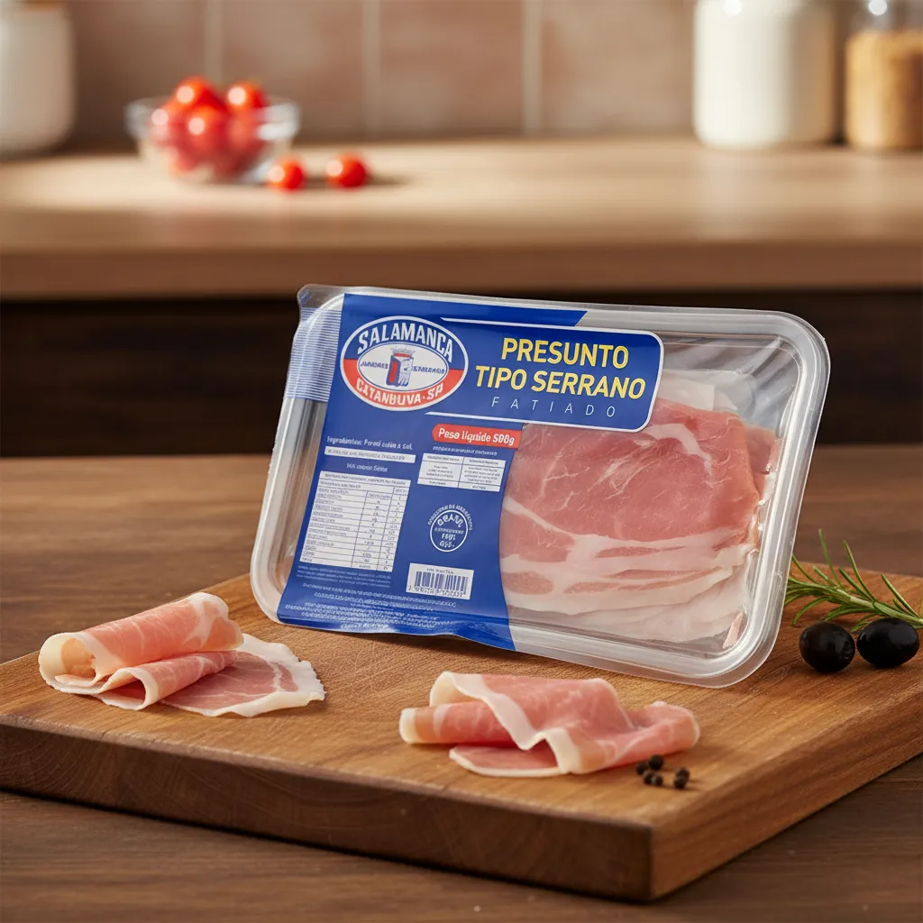 Tipo: Jamon Serrano Fatiado e interfolhado em bandeja